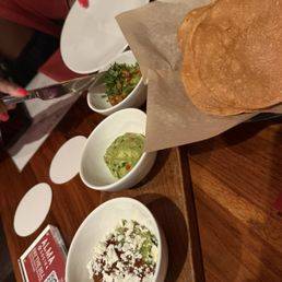 A delightful appetizer featuring three distinct and vibrant preparations of our fresh, house-made guacamole. Explore a range of flavors and textures, perfect for a shared tasting experience.