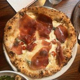 An exquisite appetizer showcasing exceptionally creamy burrata cheese, delicately infused with the luxurious aroma of black truffles. Served with crusty artisan bread and a hint of olive oil, it offers a decadent and aromatic experience, perfect for savoring.