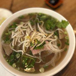 Savor the classic simplicity of Le Mekong's Pho Beef. This comforting bowl features a fragrant, clear beef broth, meticulously simmered for hours to achieve its deep, complex flavor. It's served with delicate rice noodles and generous slices of thinly cut rare steak, which cooks gently in the hot broth. Accompanied by fresh herbs, bean sprouts, and a wedge of lime, it’s a timeless and nourishing Vietnamese staple.