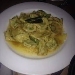 Handmade tortelli pasta pockets generously filled with a velvety blend of fresh ricotta cheese and tender spinach. These delicate parcels are crafted to perfection, offering a harmonious blend of creamy and earthy flavors, often served with a light, complementary sauce.