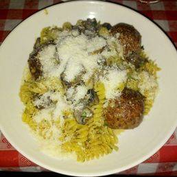 Two generously sized, succulent chicken meatballs, simmered and served in a decadent, creamy mushroom sauce. This dish offers a comforting and savory experience with tender chicken and a rich, earthy sauce.