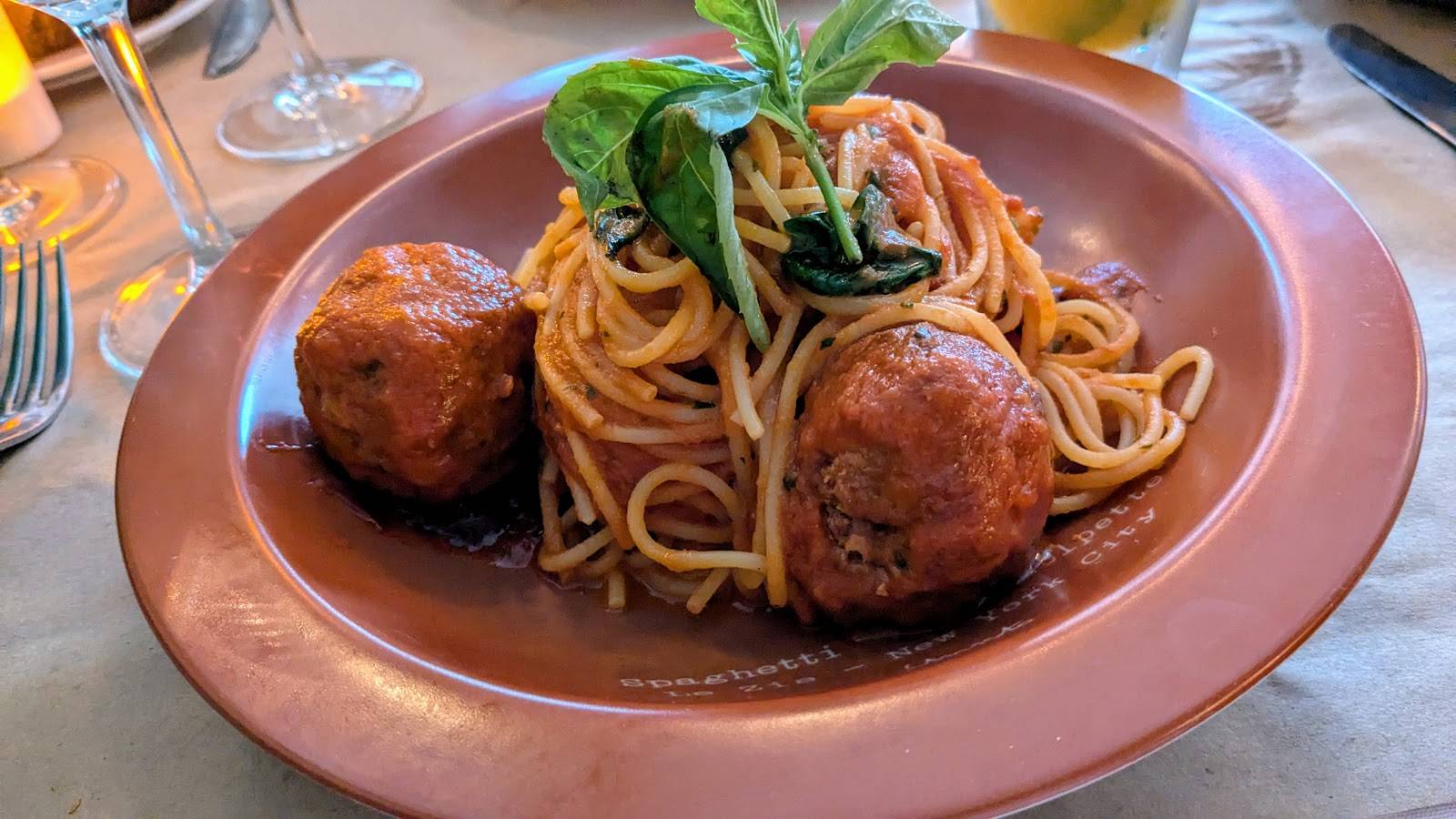 /Spaghetti and Meatballs on Brown Plate