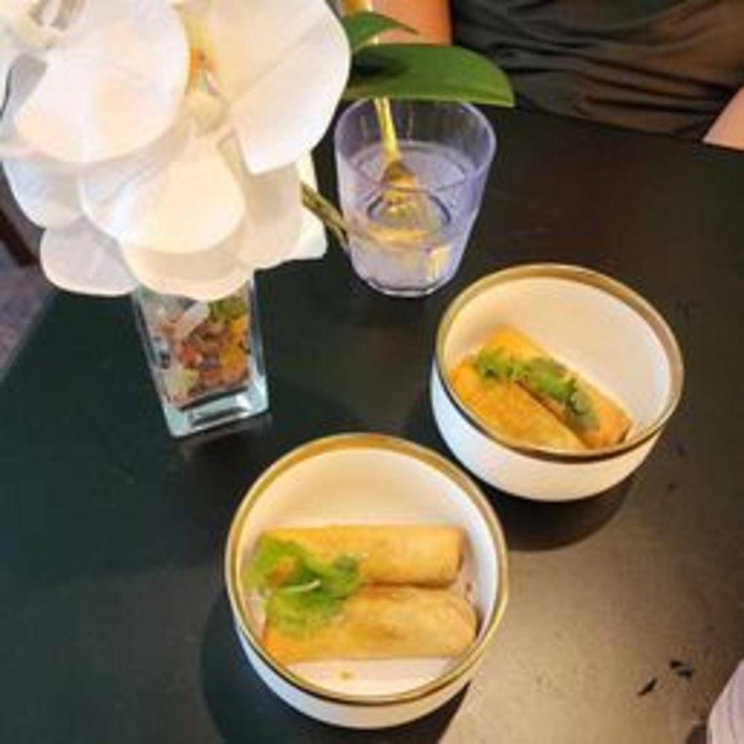 Crispy fried spring rolls filled with a delightful mix of glass noodles and fresh vegetables, served with a sweet and tangy plum dipping sauce, ideal for a starter.