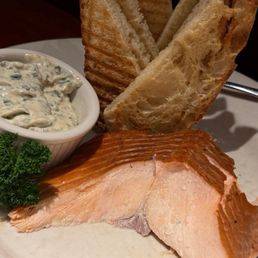 Delicately smoked salmon, offering a rich, buttery texture and a distinct, refined flavor. Served elegantly with classic accompaniments such as thinly sliced red onion, capers, dill cream cheese, and toasted artisanal bread, making for a sophisticated appetizer or light main at Los Altos Grill.