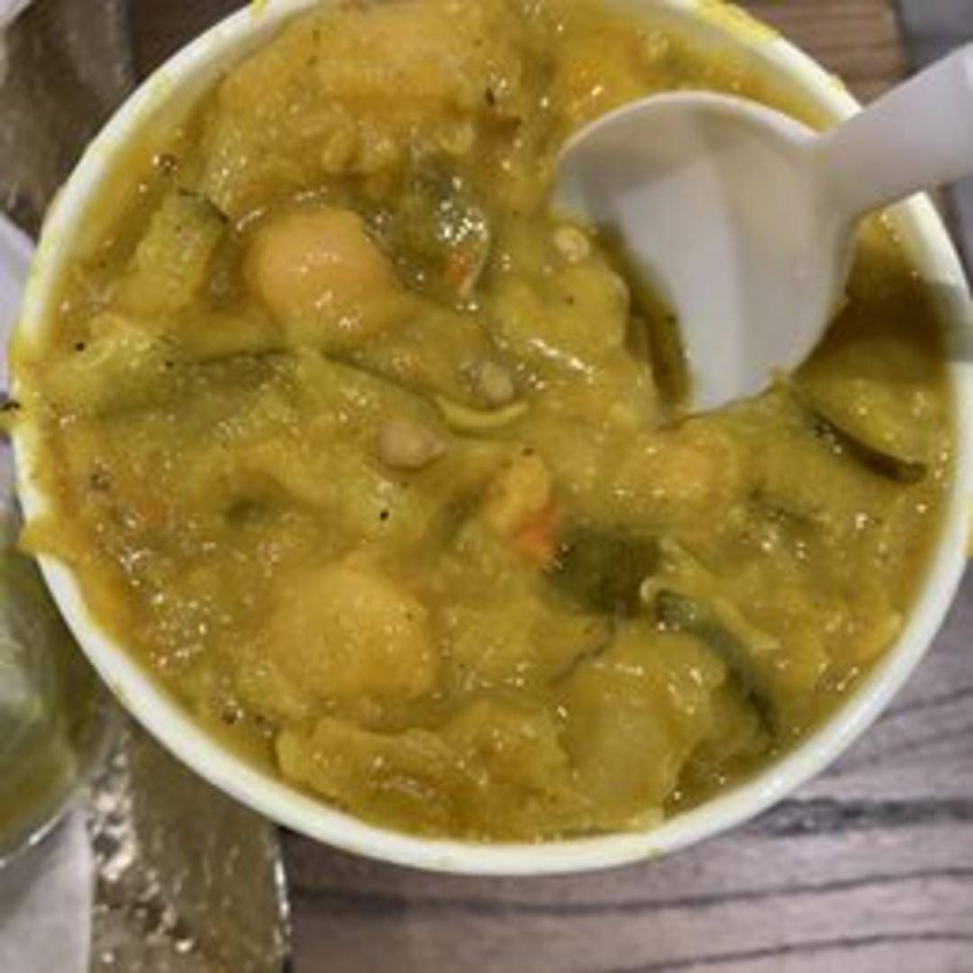 A nourishing and robust vegan stew, prepared in the Rastafarian 'Ital' tradition, packed with a colorful medley of fresh vegetables, root crops, legumes, and hearty greens, all simmered in a rich coconut milk base with natural herbs and spices.