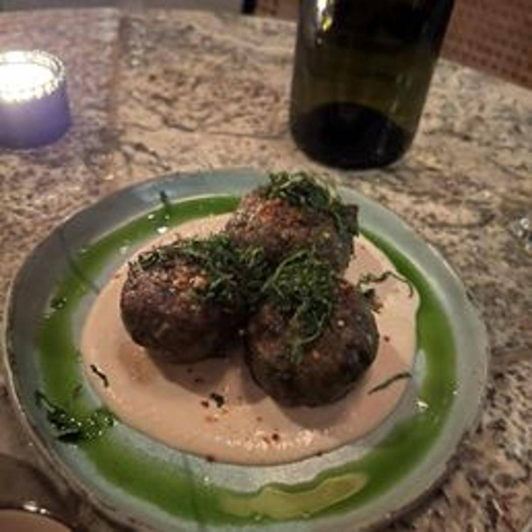 A uniquely flavorful kofta made with vibrant green chorizo, infused with poblano chiles, cilantro, and a blend of aromatic spices, offering a smoky and subtly piquant profile. Served with a refreshing salsa verde.