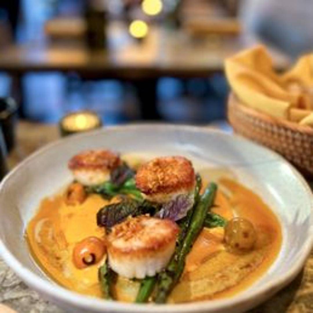 Pan-seared to perfection, our plump and tender scallops boast a beautiful golden crust and a delicate, sweet flavor. Accompanied by seasonal accompaniments that enhance their natural elegance.