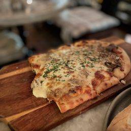 A rustic and flavorful flatbread topped with a diverse selection of sautéed wild mushrooms, creating a rich umami profile. Baked on a crispy crust and often finished with a blend of complementary cheeses, fresh herbs, and a drizzle of olive oil for an earthy, satisfying bite.