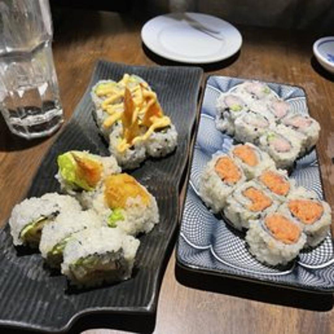 A classic maki roll filled with finely diced fresh tuna, mixed with a savory and spicy sauce, often complemented by crisp cucumber or scallions, all neatly rolled with rice and nori.